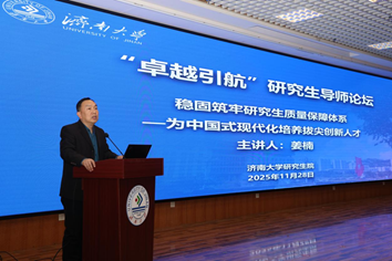 在拔尖创新人才培养环节,姜楠研究员聚焦中国式现代化建设需求,提出“顶层设计+学科交叉+实践赋能”的三维培养模式。她详细介绍了山东大学第一例“实践成果申请学位”的全过程管理,指出专业学位研究生培养和学术学位研究生培养过程中的共同点与区别。结合自身多年思想政治教育研究经验,她强调要将美育育人、师德涵养融入培养全过程,助力研究生成长为兼具学术素养与家国情怀的高层次人才。