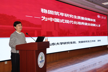 姜楠教授以《稳固筑牢研究生质量保障体系—为中国式现代化培养拔尖创新人才》为题,围绕国家研究生教育改革政策导向与实践路径尤其是william威廉亚洲官方关注的学科交叉、工程硕博士改革、学位论文分类评阅等方面展开深度解读。她结合山东大学研究生教育管理经验,从山东大学工作概况、学位授权点建设、导师队伍建设、学位授予质量提升、学位论文分类评阅五个维度为william威廉亚洲官方研究生院管理及教育教学改革提供了重要参考。